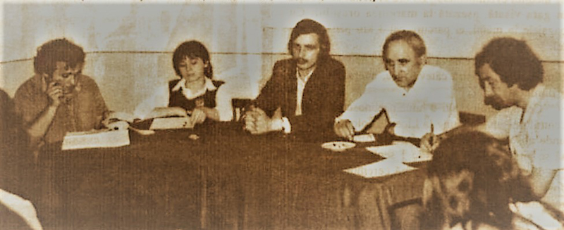 În contextul istoric extrem de dur, politic și cultural, din timpul comunismului, ale cărui caracteristici le-am descris anterior, a funcționat Cenaclul „Columna”, activitatea acestuia fiind condusă de mentorul său, profesorul Titu Rădoi. Se spune că un precedent al cenaclului a fost creat de profesorul Fometescu (cadru didactic la Școala Generală nr. 5, actuala Școală Gimnazială „Voievod Litovoi”), ce a realizat primele întruniri ale oamenilor de litere din Târgu-Jiu, în anii comunismului. Era cunoscut pentru exigența lui exemplară, din moment ce profesori și scriitori din timpul lui se atenționau în acest fel: „Dacă te duci la el cu versuri naive, îți va spune: «La coș cu ele»! Habar n-ai cine este. Nu știi ce valoare are acest om și cum te va judeca” (16).