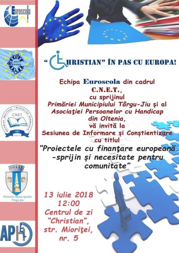 Colegiului Național “Ecaterina Teodoroiu” din Târgu-Jiu, în parteneriat cu Primăria Municipiului Târgu-Jiu și Asociația Persoanelor cu Handicap din Oltenia. “Centrul de zi Christian este rezultatul unei astfel de finanțări europene, care și-a dovedit eficiența și suntem onorați că echipa Euroscola ne-a ales în această campanie, urându-ne tuturor succes”, spun reprezentanții Centrului Christian.