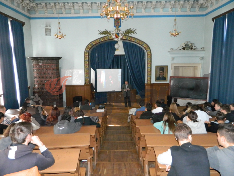 Reprezentanţii ANCERM Gorj, preşedintele, col. (r) dr. ing. Walter Loga, vicepreşedintele, prof. Andrei Popete-Pătraşcu, alături de dl. Marcel Brînzan au vorbit elevilor prezenţi în amfiteatrul Colegiului Național „Tudor Vladimirescu” despre activitatea desfăşurată de Asociaţia Naţională Cultul Eroilor „Regina Maria” Filiala Gorj, dar şi despre nevoia de responsabilizare a tinerei generaţii în direcţia organizării şi desfăşurării de activităţi pentru comemorarea şi cinstirea eroilor şi martirilor neamului nostru, a personalităţilor şi a momentelor importante din Istoria Românilor, la care pot participa elevii din învăţământul preuniversitar, aşa cum se arată în Art. 1 din Protocolul de Colaborare nr. 303/07.05.2013, semnat între Asociaţia Naţională Cultul Eroilor „Regina Maria” şi Ministerul Educaţiei Naţionale.