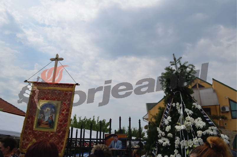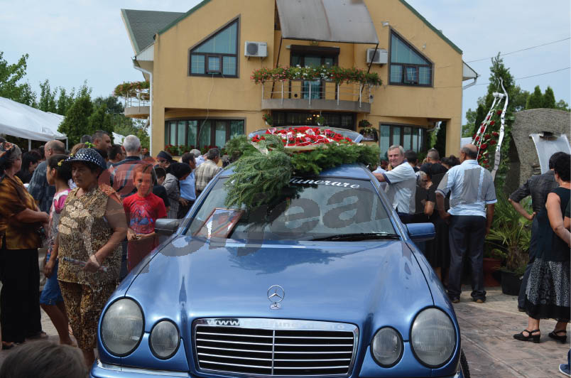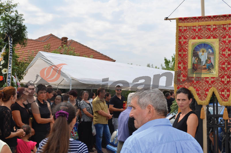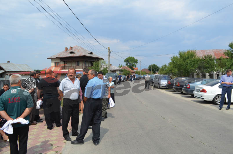 Căldura de afară a amplificat parcă starea de tristeţe a celor prezenţi la înmormântare, oamenii adăpostindu-se la umbră până la începerea slujbei religioase, toţi vorbind