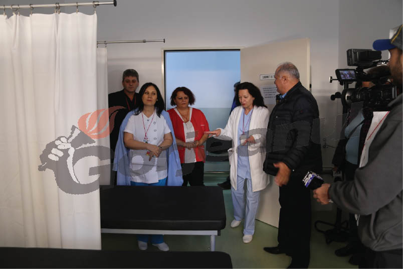 lucrărilor derulate conform contractului de lucrări și furnizare dotări. Au fost executate următoarele categorii de lucrări: Montare termosistem; Montare grup generator; Montare cazan de încălzire și preparare apă caldă și menajeră; Montare sistem de detecție avertizare și alarmare incendiu; Montare centrală voce-date și instalație aferentă; Înlocuire învelitoare, jgheaburi și burlane; Execuție hidroizolație subsol; Consolidare planșeu subsol; Execuție rigole, preluare ape pluviale; Montare structură metalică copertină scară subsol; Montare uși metalice și PVC la subsol, parter, etaj I și etaj II; Montare ferestre PVC la subsol, parter, etaj I și etaj II; Montare glafuri tablă ferestre exterior; Montare plase insecte ferestre; Montare grilaje metalice ferestre parter; Aplicare tencuială decorativă pe soclu; Execuție scară intrare incintă spital – montare granit; Turnare trotuare și drum acces incintă; Execuție rampă persoane cu dizabilități; Montare gresie și faianță grupuri sanitare, casa scării, cabinete; Aplicare tencuieli subțiri cu plasă de fibră de sticlă; Aplicare strat glet masă de șpaclu pereți și