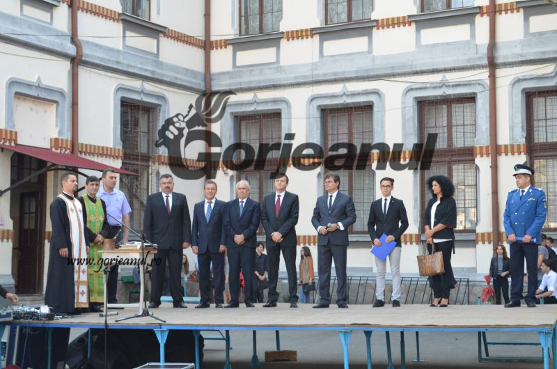 Prima zi a acestui an școlar a fost rezervată festivităților de deschidere. O astfel de festivitate s-a desfășurat și la Colegiul Național “Tudor Vladimirescu” din Târgu-Jiu, unitate de învățământ considerată a fi una dintre cele mai bune din județ. Prezenți pentru a le ura “Succes” elevilor în noul an școlar au fost prefectul de Gorj, Gheorghe Paraschivu, primarul municipiului Târgu-Jiu, Florin Cârciumaru, deputatul Mihai Weber, dar și șeful Inspectoratului Școlar Județean Gorj, Ion Ișfan. “Pentru mine, în calitate de primar, este o mare bucurie că sunt alături de dumneavoastră la deschiderea anului școlar și prin prezența mea vreau să vă asigur că, în continuare, Primăria Municipiului Târgu-Jiu va fi lângă dumneavoastră, dragi elevi, lângă dumneavoastră, dragi părinți și lângă dumneavoastră, stimate cadre didactice ca mai departe în această unitate să funcționeze unul dintre cele mai bune procese de învățământ. Cred că ați observat că, de-a lungul anilor, Primăria Târgu-Jiu a dat și a acordat un sprijin substanțial acestei unități. Pot să spun că sprijinul a fost pe măsura implicării dumneavoastră și pe măsura rezultatelor. (…) Vă felicit încă o dată pentru rezultatele obținute, vă asigur de toată stima și respectul care vrea să vină din partea Primăriei ca instituție și vă asigur că în continuare vom fi lângă dumneavoastră. Mult succes în noul an de învățământ 2016 – 2017!”, le-a urat primarul Florin Cârciumaru elevilor. La rândul său, Gheorghe Paraschivu, prezent atât în calitate de prefect, cât și în calitate de părinte, a spus: “Pentru mine este un moment emoționant, astăzi, să particip la festivitatea de deschidere a noului an școlar. Mă gândesc ce emoții au cei ce pășesc pentru prima dată pragul școlii, mă gândesc ce emoții au cei care încep clasa a V-a și pleacă de la domnul sau doamna învățătoare la domnii profesori, mă gândesc la cei din clasa a IX-a care sunt, unii, pentru prima dată la Colegiul Național «Tudor Vladimirescu» și mă gândesc la cei de clasa a XII-a, care în acest an susțin examenul de Bacalaureat și vor să meargă mai departe pe cărările cunoașterii, pe cărările științei. Tuturor vă doresc succes în noul an școlar”. Deputatul PSD Mihai Weber a vorbit despre responsabilitatea de a fi elev al Colegiului Național “Tudor Vladimirescu”. “A fi elev la Colegiul Național «Tudor Vladimirescu» este cinste și o responsabilitate. Cinstea de a fi printre cei mai buni și responsabilitatea este de a te ridica la nivelul așteptărilor și a duce mai departe numele foarte bun pe care acest colegiu îl are. (…) Permite-ți să vă adresez cele mai sincere urări de succes, să aveți un an școlar plin de realizări”, a spus acesta. Despre rezultatele foarte bune obținute de elevii Colegiului Național “Tudor Vladimirescu” a vorbit și Ion Ișfan. “E o mare onoare pentru mine să fiu astăzi aici, la Colegiul Național «Tudor Vladimirescu», unitate de prestigiu a învățământului preuniversitar românesc. În ultimii trei ani cred că a fost cea mai bună unitate de învățământ din județul Gorj, cu rezultate excepționale în special la olimpiadele naționale și internaționale. (…) Sunt convins că, împreună cu dascălii de la această minunată instituție, copiii, elevii vor avea cele mai bune rezultate. Eu vă doresc să țineți steagul acolo sus și anul care începe acum să fie încununat cu rezultate la fel de bune ca cele din anul școlar precedent”, a spus șeful Inspectoratului Școlar Județean Gorj.