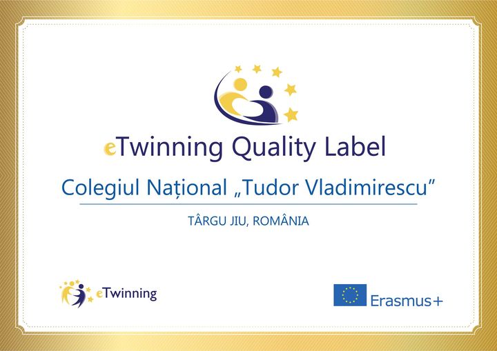 Colegiul Național „Tudor Vladimirescu” din Târgu-Jiu se numără printre cele 78 de unități de învățământ din România care au primit anul acesta titlul de „Școală eTwinning”. ”În urma desfășurării unor importante Proiecte europene eTwinning, profesorii și elevii implicați au primit Certificatul de calitate (Quality Label). Liceul nostru devine deschizător de drumuri, fiind recunoscut drept model pentru alte școli în domenii precum: practicile digitale, practicile de siguranță online, abordările inovatoare și creative ale pedagogiei, promovarea dezvoltării profesionale continue a cadrelor didactice, promovarea practicilor de învățare în colaborare în rândul personalului și elevilor. Certificatul obținut reprezintă atât o recunoaștere a reușitei personale a profesorilor, cât și o confirmare a rezultatelor deosebite obținute de întreaga echipă eTwinning din școala noastră”, au anunțat reprezentanții CNTV. Statutul de ”Școală eTwinning” poate fi atins în urma parcurgerii unui traiect de dezvoltare, cu etape care pot fi evaluate obiectiv. Nu este o competiție, ci un proces de evoluție de la un nivel la altul.