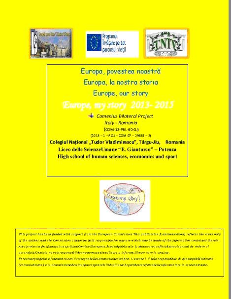 Cartea de poveşti “Europa, povestea noastră” este rodul cooperării între elevii Colegiului Naţional “Tudor Vladimirescu” şi cei de la Liceo Delle Scienze Umane “E. Gianturco” din Potenza, Italia. În această carte elevii au adunat cele mai frumoase poveşti ale copilăriei lor pe care le prezintă în trei limbi (română, italiană şi engleză), au realizat interviuri cu bunicii lor despre poveștile copilăriei lor și au inclus și un glosar de termeni literari realizat în timpul mobilităților in instituțiile din Italia și România. Cartea este presărată de desene ale elevilor, ce şi-au putut manifesta astfel talentul artistic. “Demersul acestor copii este un îndemn la lectură, o punere în valoare a moștenirii culturale și o cunoaștere profundă a valorilor europene. El este o încununare a celor doi ani de Proiect Bilateral Comenius «Europa, povestea mea», desfășurat în cele două instituții paralele cu multe activități frumoase pentru elevii participanți”, a spus prof. Teodora Dragotă. În ceea ce priveşte broșura “Împreună într-o Europă Unită”, aceasta este produsul final al Proiectului Multilateral Comenius cu același nume, o cooperare între școli din Olanda, Polonia, Italia, Turcia, Portugalia, ce cuprinde materiale realizate în urma dezbaterilor lunare pe teme europene de interes actual, precum rețelele de socializare, proiecte didactice ce au ca scop dezbaterea și înțelegerea acestor teme, materialele de diseminare ale activităților și mobilităților, dar și posterele realizate de elevi pe această temă. Broşura constituie un material valoros ce poate fi folosit ca material auxiliar la diverse materii ce vizează tematica europeană. “Acest concurs este o ocazie perfectă pentru elevii participanţi de a împărtăşi bucuria muncii în astfel de proiecte. Sperăm ca participarea la acest concurs național să însemne un nou premiu pentru Colegiul Naţional «Tudor Vladimirescu» care în anul 2012 a obținut Premiul II cu o altă carte, rezultat al proiectului Bilateral Comenius «Common European Values»”, a mai spus Teodora Dragotă.