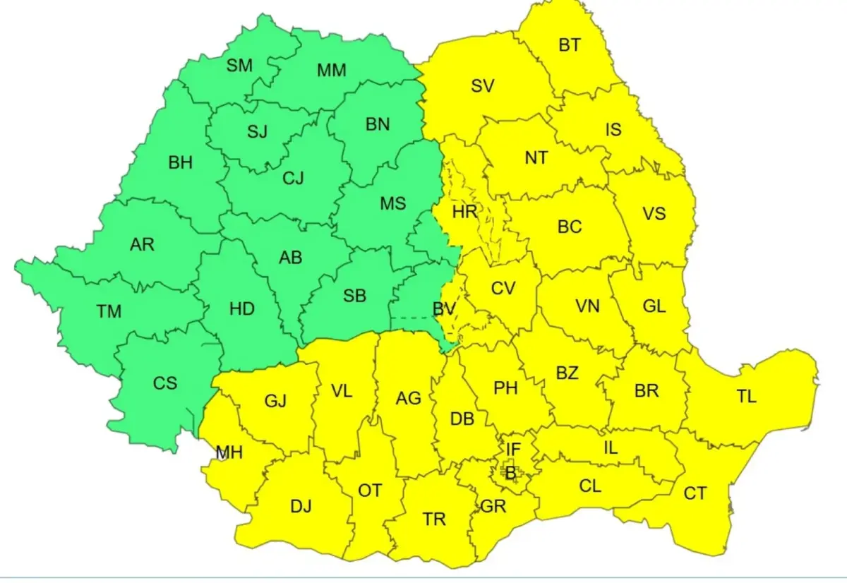 Administrația Națională de Meteorologie a emis o avertizare Cod Galben de ninsori, ger și intensificări ale vântului pentru mai multe zone din țară, temperaturile urmând să coboare până la minus 20 de grade Celsius.