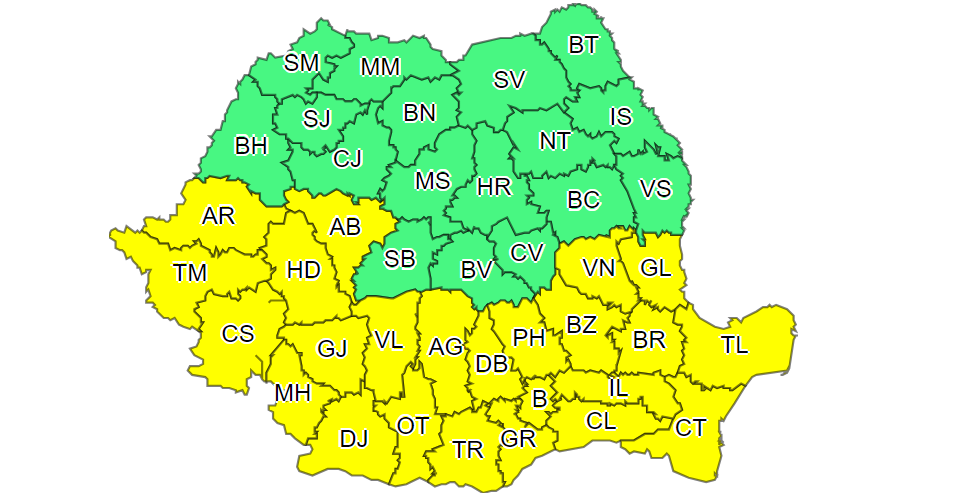 Mai mult de jumătate din ţară a intrat joi sub Cod galben de caniculă şi disconfort termic ridicat, iar maximele vor ajunge la 40 de grade Celsius.