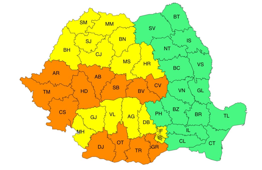Potrivit avertizării cod galben, valul de căldură se va menține astăzi în Maramureș, cea mai mare parte a Transilvaniei și local în Crișana, Oltenia și Muntenia, unde temperaturile maxime se vor situa în general între 31 și 34 de grade. Disconfortul termic va fi ridicat, iar indicele temperatură-umezeală (ITU) se va situa în jurul pragului critic de 80 de unități.