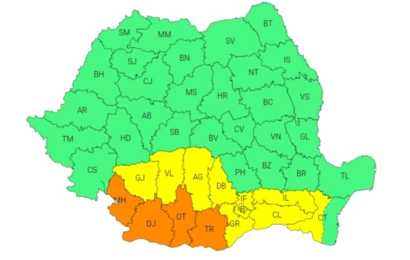 Administrația Națională de Meteorologie (ANM) a emis o avertizare Cod Portocaliu de caniculă și disconfort termic accentuat, valabilă în intervalul 23 iulie, ora 10:00 – 24 iulie, ora 10:00.