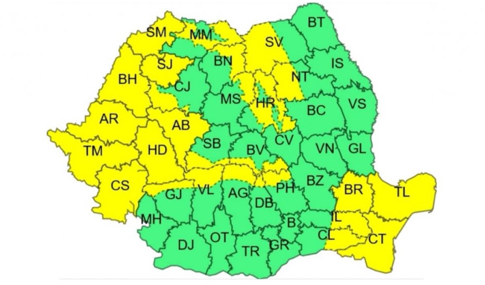 Fenomene vizate: intensificări ale vântului, precipitații moderate cantitativ, răcire accentuată, îngheț la sol și brumă.