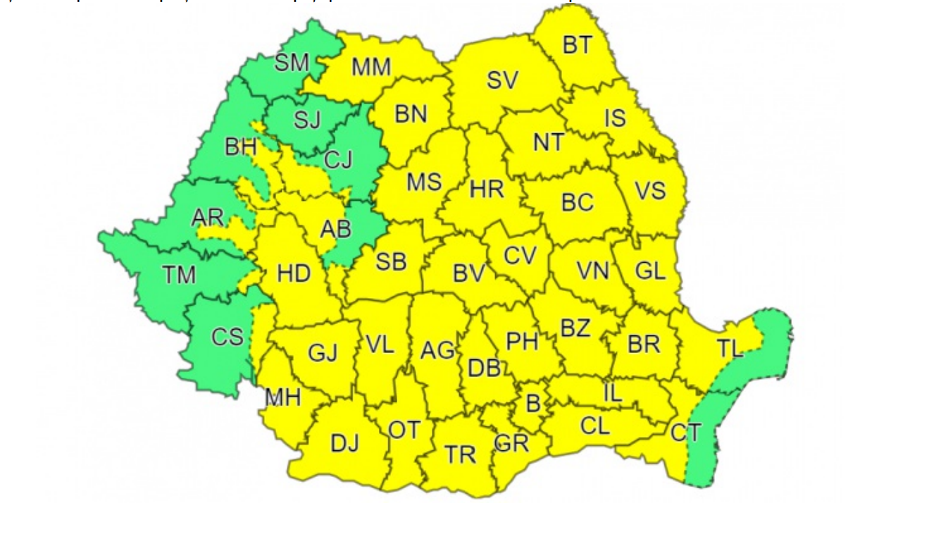 „La munte, în Oltenia, Muntenia, Moldova, zona continentală a Dobrogei și local în Transilvania și Maramureș vor fi perioade cu instabilitate atmosferică accentuată. Aceasta se va manifesta prin averse torențiale, descărcări electrice, intensificări ale vântului și pe alocuri vijelii și grindină. În intervale scurte de timp sau prin acumulare cantitățile de apă vor depăși 25…40 l/mp și pe arii restrânse 50…70 l/mp”, au transmis meteorologii.