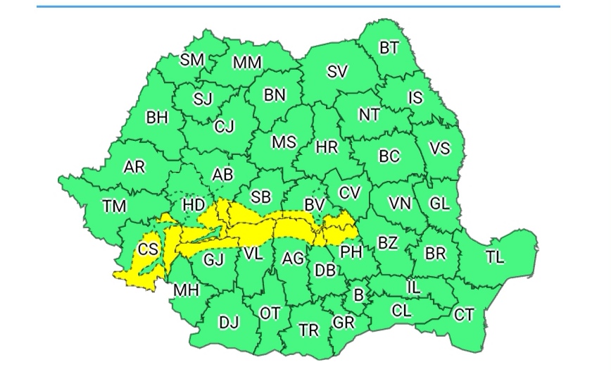 În Munții Banatului și în Carpații Meridionali va ninge și se va depune strat nou de zăpadă, local consistent îndeosebi la altitudini de peste 1400 m, unde vântul va avea intensificări, cu rafale de peste 70…80 km/h și va fi viscol ce va determina scăderea semnificativă a vizibilității.