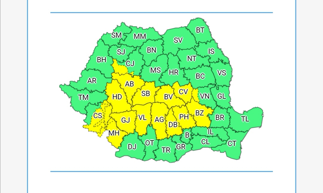Notă: Manifestări de instabilitate atmosferică se vor semnala pe arii restrânse și în restul țării.