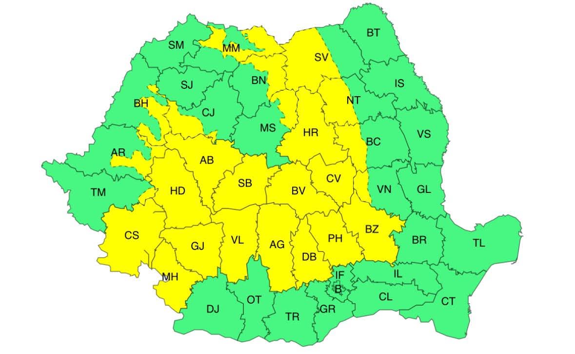 Notă: Astfel de fenomene se vor semnala pe arii restrânse și în restul teritoriului.