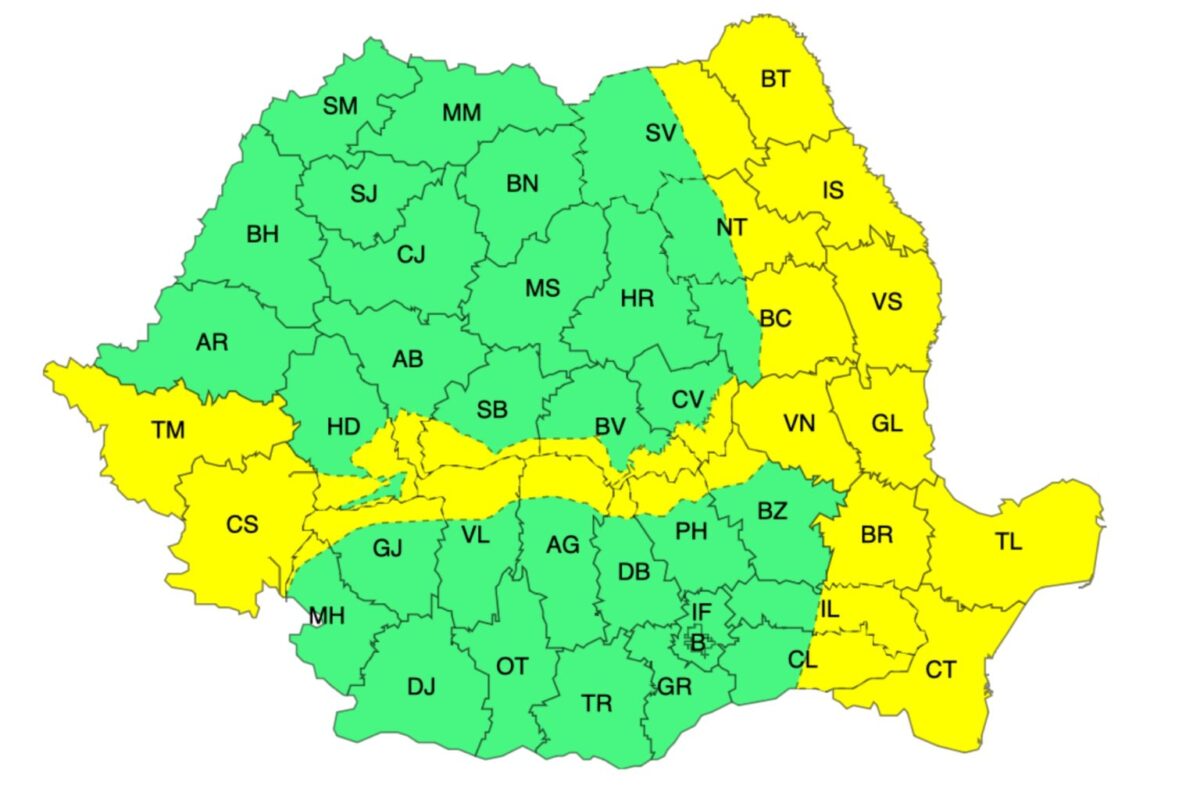 „În Moldova, Dobrogea, estul Munteniei, Banat și în Carpații Meridionali, Carpații de Curbură și Munții Banatului vântul va avea intensificări cu viteze de 50…60 km/h și izolat de 70 km/h. La altitudini mari, în general de peste 1700 m, rafalele vor fi de 80…110 km/h”, transmite ANM.