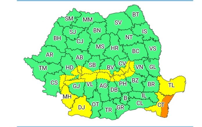 Administraţia Naţională de Meteorologie (ANM) a emis, marţi, o atenţionare Cod galben de vânt puternic, valabilă și pentru județul Gorj. Astfel, potrivit ANM, în intervalul 30 noiembrie, ora 10 – 30 noiembrie, ora 20, în Dobrogea, precum și în vestul și sud-vestul Olteniei vântul va avea intensificări, cu rafale cuprinse între 55 și 75 km/h. Intensificări ale vântului vor fi și la altitudini de peste 1500 m în Carpații Meridonali și de Curbură, cu viteze ce vor depăși 75…85 km/h și va ninge viscolit.