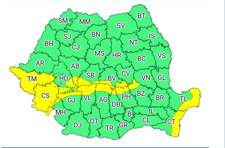 Administraţia Naţională de Meteorologie (ANM) a emis o atenţionare Cod galben de vânt şi ninsoare viscolită valabilă pentru mai multe județe ale țării.