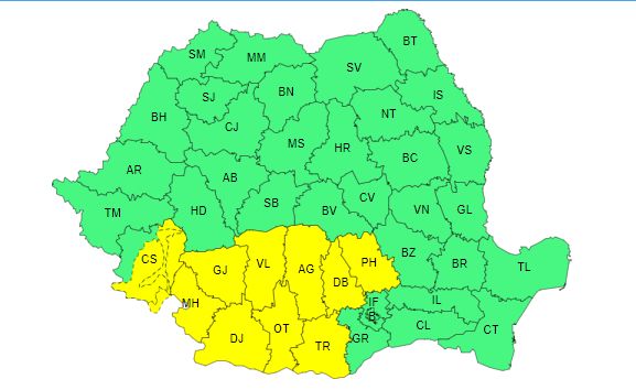 În intervalul menționat, în Oltenia, în vestul și nord-vestul Munteniei și în sudul Banatului vor fi perioade cu instabilitate atmosferică. Local aceasta se va manifesta prin intensificări ale vântului și vijelii (rafale în general de 55…70 km/h), grindină, descărcări electrice și averse torențiale. În intervale scurte de timp sau prin acumulare cantitățile de apă vor fi de 20…25 l/mp și izolat de peste 40 l/mp”, potrivit ANM.