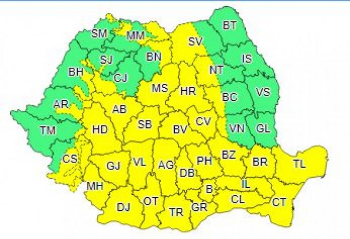 De asemenea, duminică, de la ora 08.00 și până la ora 18.00, va fi în vigoare un cod galben de vânt puternic, în mai multe regiuni din țară.