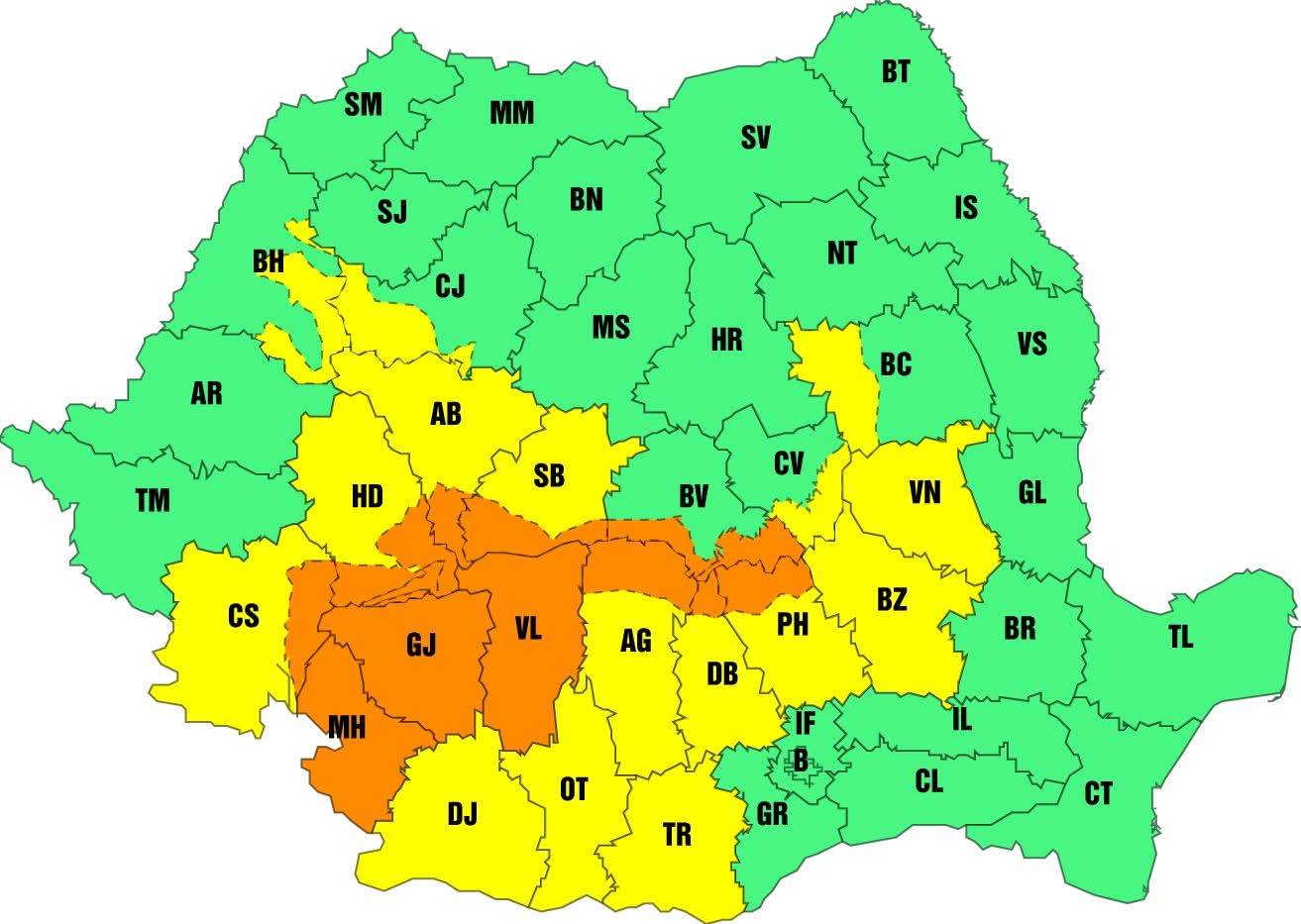 Potrivit meteorologilor, cantitățile de apă vor ajunge la 50-70 l/mp, iar în nordul Olteniei, inclusiv în Gorj, acestea vor depăși local 80-100 l/mp.
