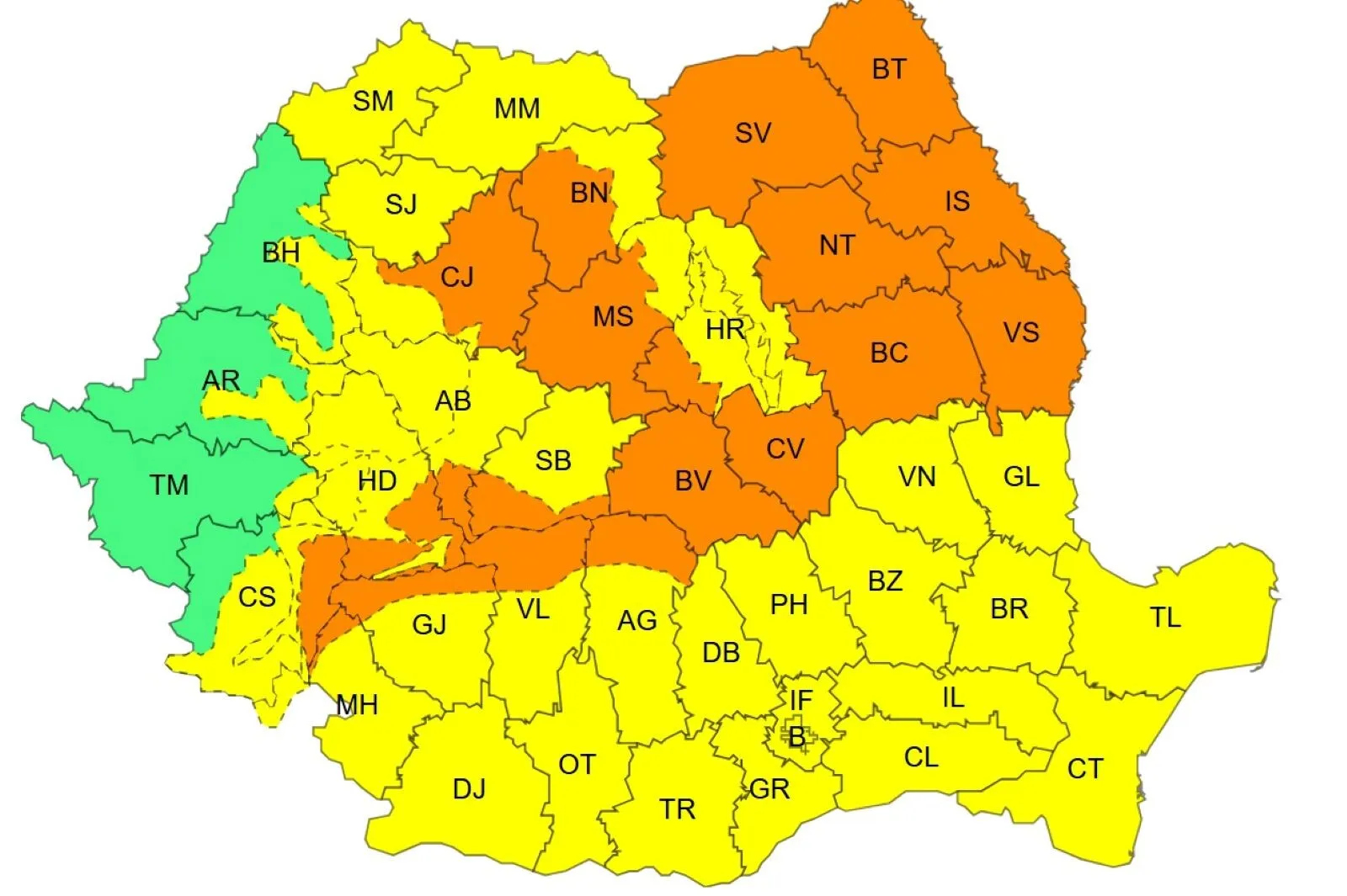 Meteorologii vor actualiza mesajul în funcție de evoluția fenomenelor.