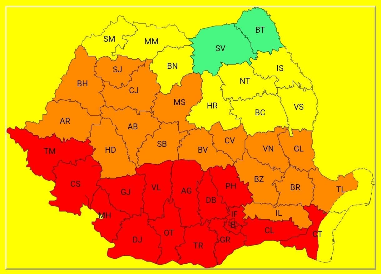 Administrația Națională de Meteorologie (ANM) a emis noi avertizări de tip cod roșu și portocaliu de caniculă și disconfort termic accentuat.
