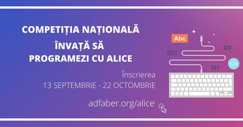 Elevii de gimnaziu și liceu pasionați de informatică sunt invitați să participe la o nouă ediție a competiției naționale ,,Învață să programezi cu Alice”. Anul acesta, elevii se vor întrece în realizarea unui joc educațional sau a unei lecții interactive.
