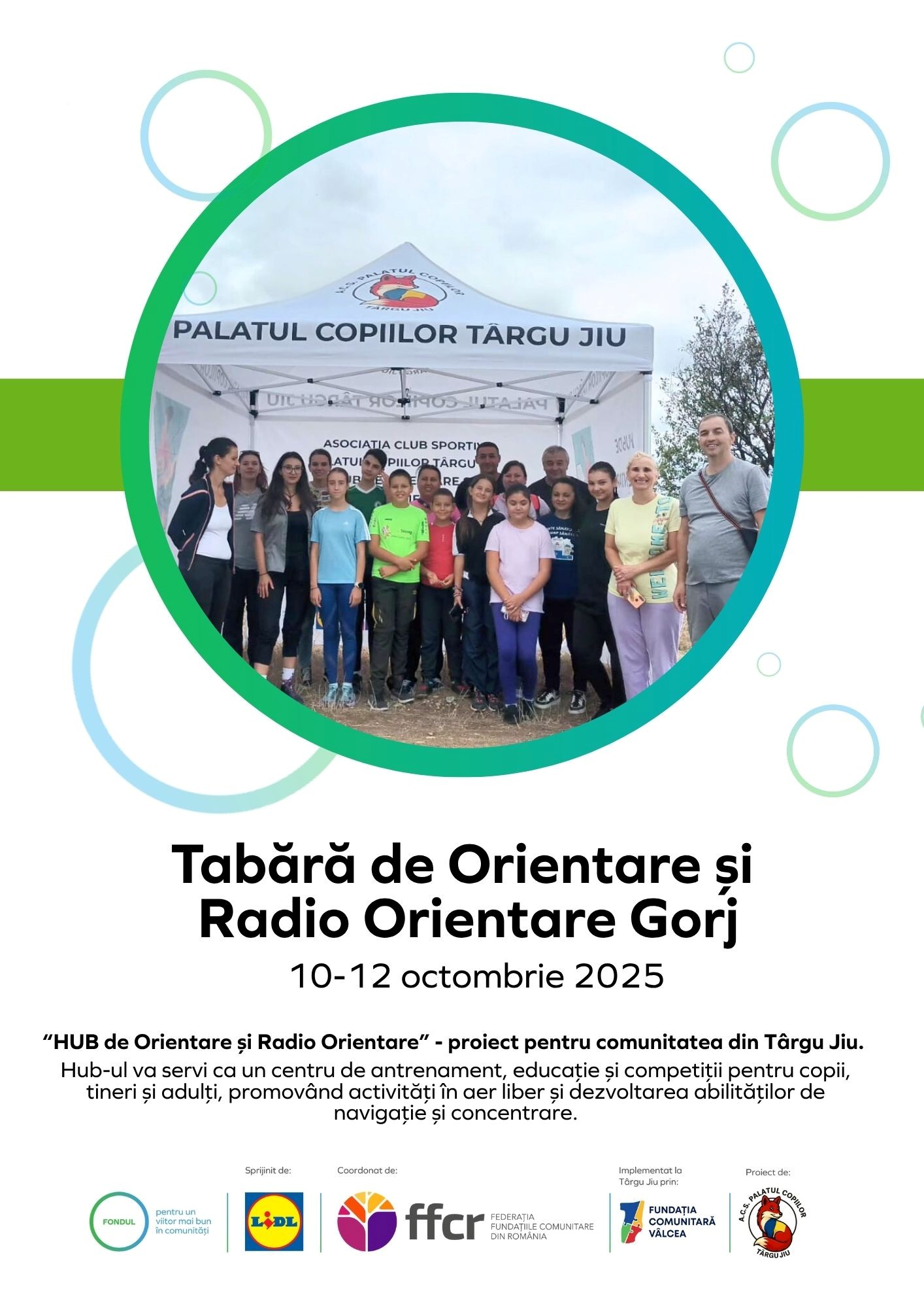 Tabăra face parte din proiectul „HUB de Orientare și Radio Orientare”, Proiect finanțat prin „Fondul pentru un viitor mai bun în comunități”, cu sprijinul Lidl România, susținut de Federația Fundațiile Comunitare din România și implementat la nivel local de Fundația Comunitară Vâlcea., o inițiativă care își propune să creeze un spațiu modern de învățare, antrenament și competiție pentru întreaga comunitate din Târgu Jiu.