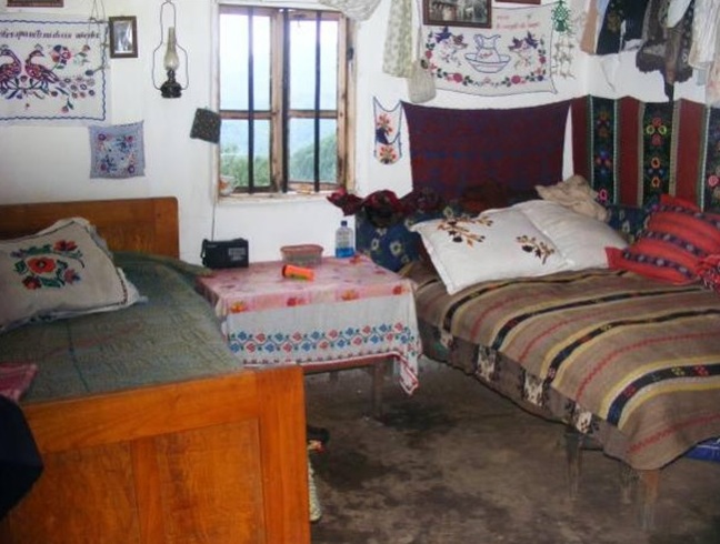 În ”sobă” sunt amplasate, de regulă, două paturi pentru odihna familei şi mai tot timpul anului un război de ţesut. Odăile au sobe oarbe alimentate cu lemne din vatra casei, sunt încărcate cu pământ sau mai nou cu mortar, pe jos, de regulă este pământ bătătorit şi udat în fiecare dimineaţă când se mătura. Cu timpul sobele au început să fie pardosite cu blană de fag sau de brad.
