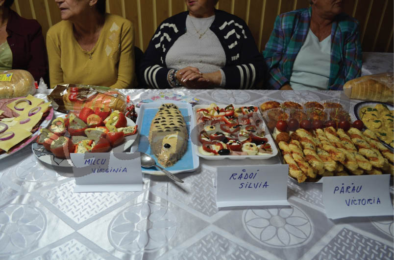 Printre preparatele supuse degustării s-au numărat: mozaic cu şuncă presată şi caşcaval, ciuperci umplute, foietaj cu cârnăciori olteneşti, ruladă cu carne şi ouă de prepeliţă, pastă de măsline şi alte aperitive. Elena Dobroiu, o altă participantă, a spus că este o obişnuită a acestor întreceri culinare: „Am fost încântată că am primit invitaţie la acest eveniment concurs. Eu am participat la toate care s-au făcut de-a lungul anilor şi, pentru această ediţie, am pregătit un aperitiv cu salată de ţelină şi morcovi, cremă de brânză, salată de vinete, crochete, menţionând că pe fiecare le-am ornat cu ce aveam în casă”.