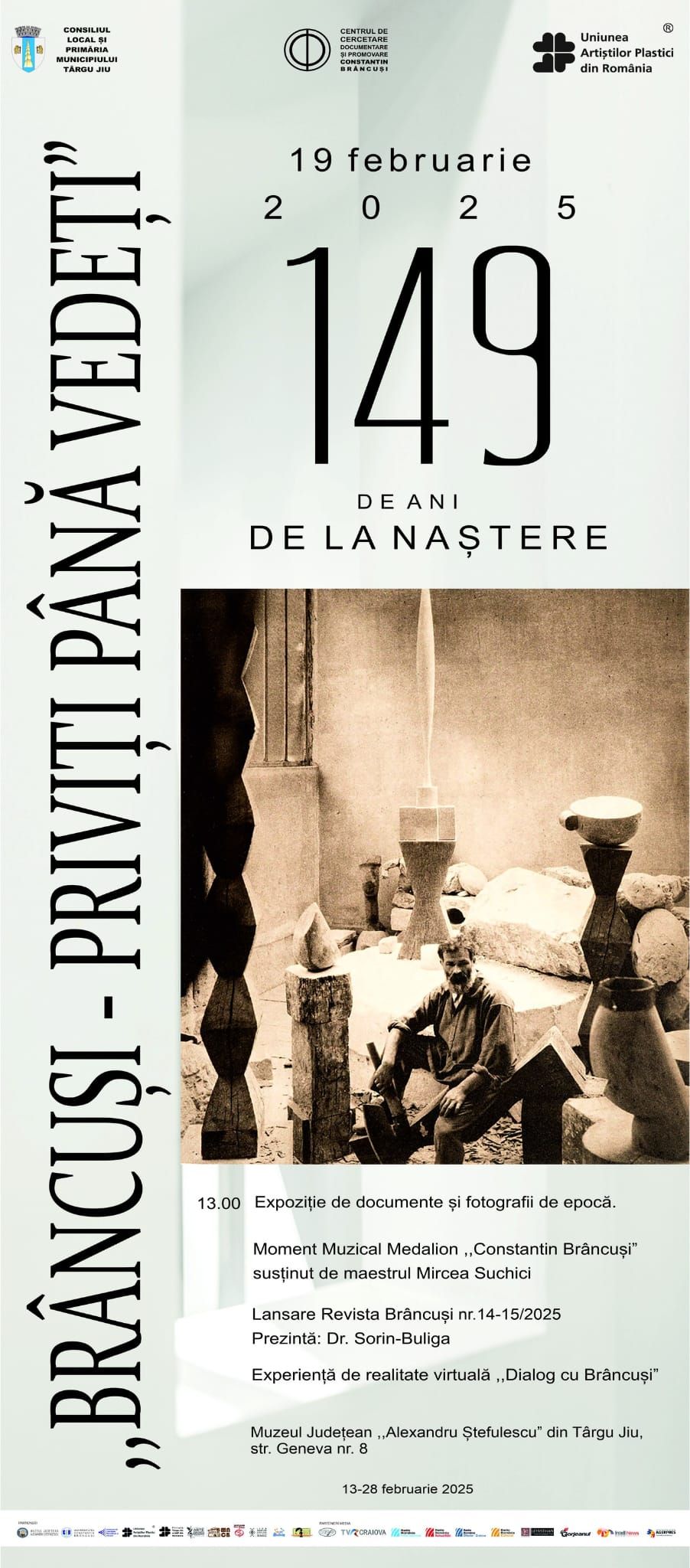 Astfel, programul complet al zilei de 19 februarie 2025 este următorul: Ora 13:00 – Expoziție „Brâncuși – Priviți până vedeți”; Moment muzical Medalion „Constantin Brâncuși” susținut de maestrul Mircea Suchici; Lansarea Revistei Brâncuși nr. 14/15 2025; Experiență de realitate virtuală – „Dialog cu Brâncuși”; Ora 15:00 – Vernisajul expoziției de pictură „Jurnal de Introspecție XIV” al artistelor Mirela Trăistaru și Dorothea Fleiss, curator: Daniel Sur; Momente muzicale susținute de elevii Liceului de Arte „Constantin Brăiloiu” din Târgu Jiu – Uscătescu Maia-Gabriela, clasa a X-a, pian, Robert Schumann-Variațiunile Abegg; Chirițoiu Eduard, clasa a X-a, vioară, „Lăutarul” de George Enescu, „Balada” de Ciprian Porumbescu și „Jocul cu bâta” de Bela Bartok. Toate acestea vor avea loc la Muzeul Județean „Alexandru Ștefulescu”, str. Geneva, nr. 8.