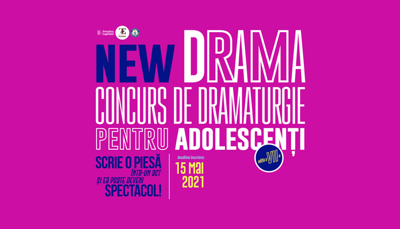 Adolescenții cu vârste cuprinse între 14 și 18 ani pot participa la cea de-a VII-a ediție a concursului de dramaturgie ,,New Drama”, organizat de Teatrul Excelsior București. Termenul limită pentru trimiterea pieselor este 15 mai 2021.