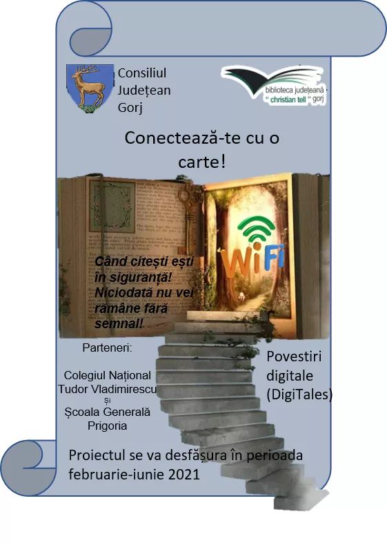 În perioada februarie-iunie 2021, Biblioteca Județeană Christian Tell” Gorj, în parteneriat cu Colegiul Național ”Tudor Vladimirescu” Târgu Jiu și Școala Generală Prigoria, va derula un nou proiect – „Conectează-te cu o carte!”. „Primăvara, anotimpul renașterii, atunci când totul se transformă, aduce Bibliotecii Județene „Christian Tell” un nou proiect în care povestirile din cărți se transformă și ele, îmbrăcând forme de „mărțișoare digitale”. Îmbinând tradiționalul cu tehnologiile moderne, biblioteca invită tinerii să realizeze DigitalStories, astfel încât cărțile să prindă viață „răspândind” vraja lor în inimile altor tineri dornici să pătrundă în universul magic al lecturii. Imaginația și creativitatea vor fi materializate prin povestirile digitale ce vor fi promovate pe pagina de Facebook a Bibliotecii Județene precum și a partenerilor implicați. Deschizătorii de drumuri ce vă vor îndruma și vor fi alături de voi sunt: coordonatorii de proiect: Roxana Ungureanu și Anca Ștefan în colaborare cu profesorii de limba și literatura română: Diana Găvan, Laura Dițoiu, Ramona Lungescu și Iliuță Șarpe”, au anunțat reprezentanții Bibliotecii Județene Gorj.