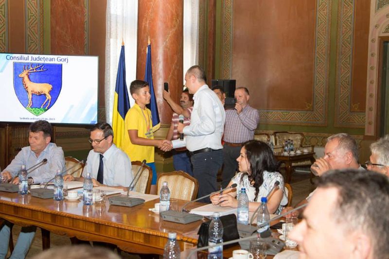 Preşedintele Consiliului Judeţean Gorj, Cosmin Popescu, a premiat, ieri, în ședinţa ordinară, echipa de fotbal juniori a Liceului cu Program Sportiv din Târgu-Jiu, câștigătoare a Campionatului Naţional „U13”.