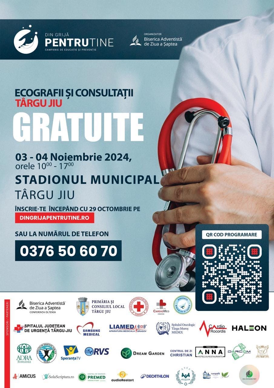 Consultații și ecografii gratuite astăzi și mâine la Stadionul Municipal din Târgu Jiu.