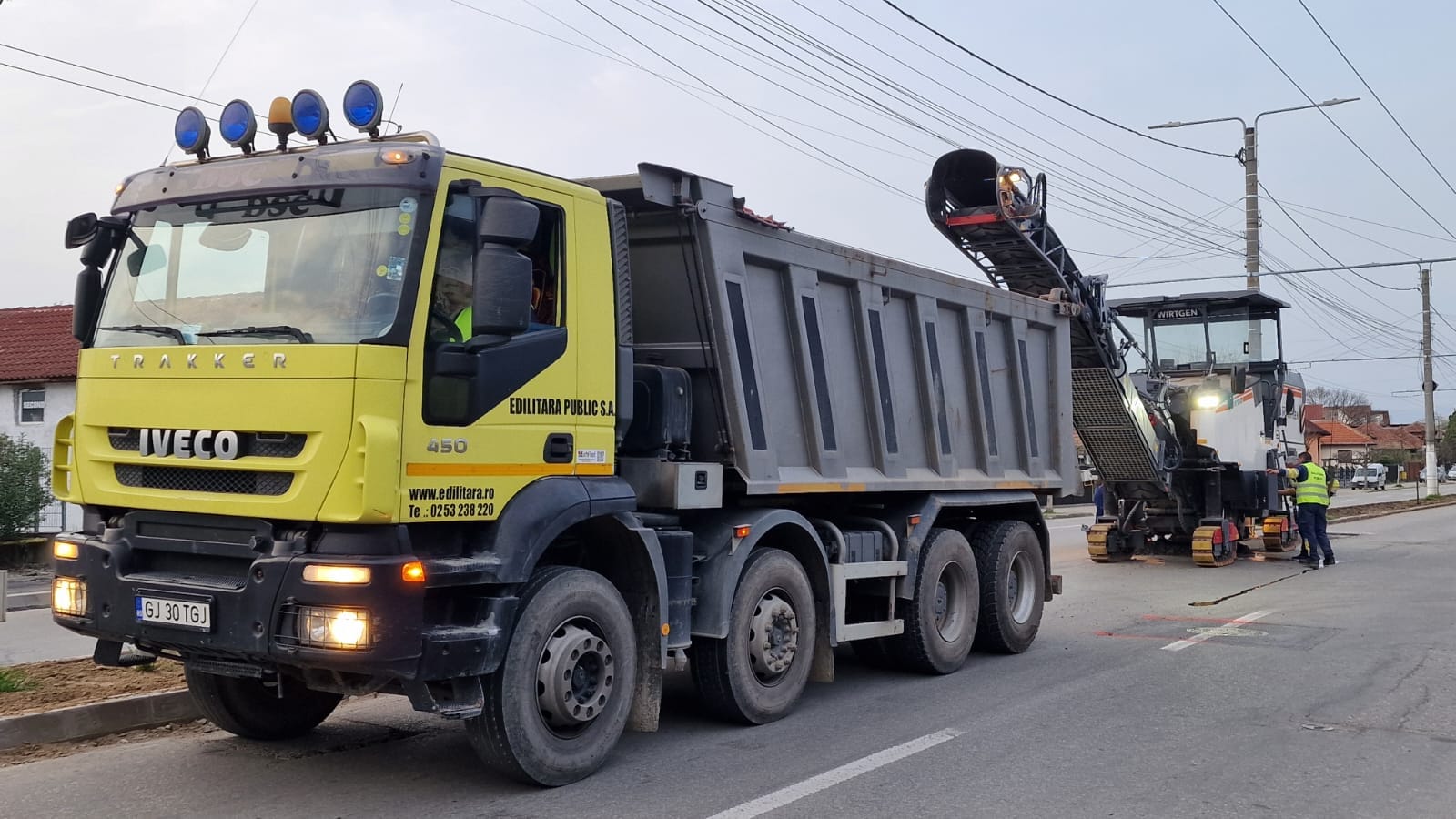 Edilitara Public S.A. continuă lucrările pe Bulevardul Ecaterina Teodoroiu din Municipiul Târgu Jiu în vederea așternerii unui nou covor asfaltic.