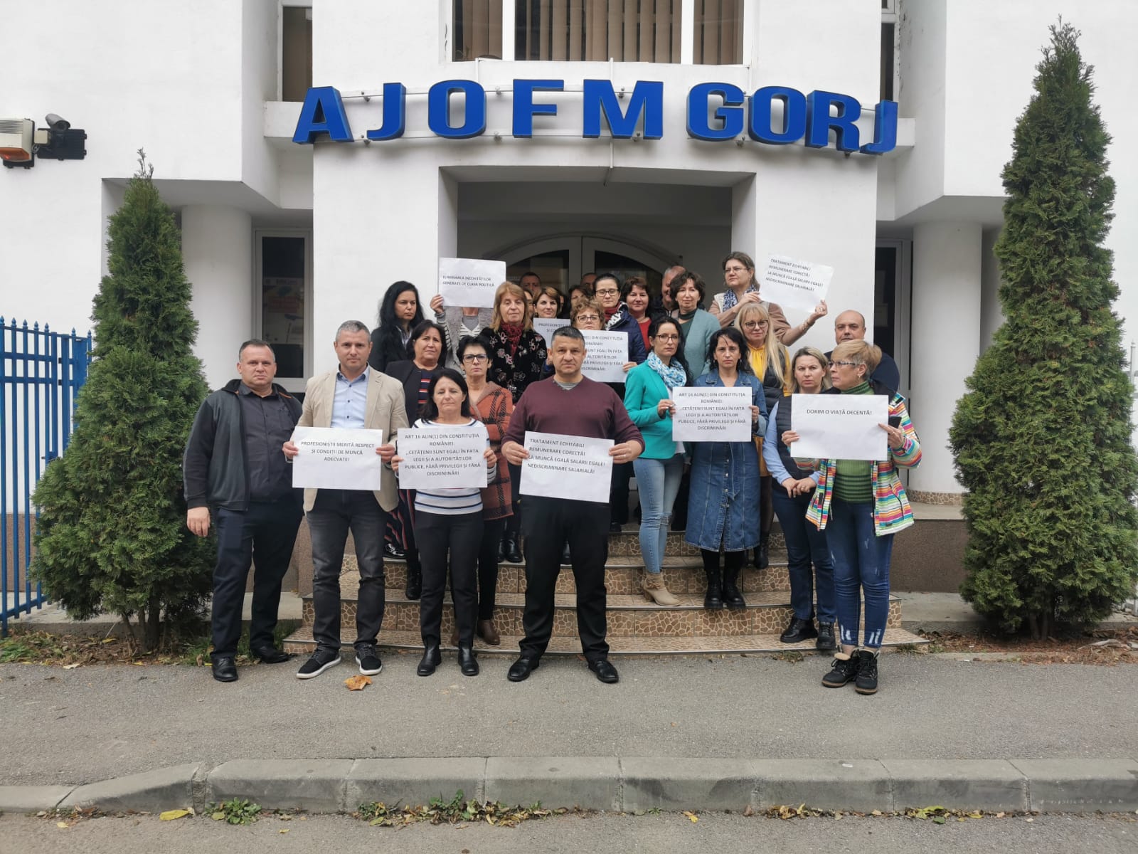 Funcționarii publici din cadrul Agenției Județene pentru Ocuparea Forței de Muncă Gorj au protestat din nou astăzi, în intervalul orar 10:00-11:00, iar mâine dimineață, între orele 08:00-10:00, va fi organizată o grevă de avertisment. ”Ne exprimăm în continuare nemulțumirea și solicităm condiții de muncă adecvate, număr de personal corespunzător volumului de activitate, eliminarea inechităților salariale din sistemul bugetar”, au transmis salariații instituției județene.