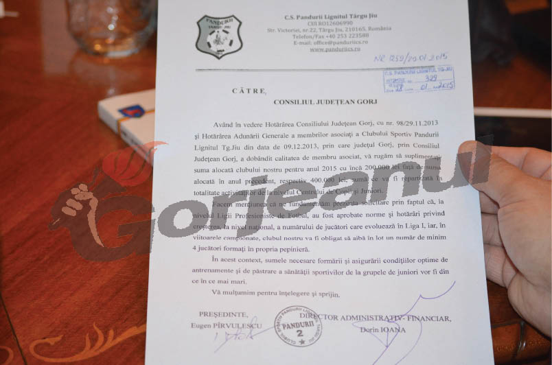 Nemulţumirea celor 11 consilieri judeţeni s-a manifestat nu doar datorită faptului că sumele aprobate către ramura sportivă a judeţului nu au fost înţelese şi justificate consilierilor, ci şi pentru faptul că oficialii echipei Pandurii Lignitul Târgu-Jiu au solicitat printr-o adresă dublarea cotizaţiei pe acest an cu două miliarde de lei vechi pe an. În 2014, cotizaţia CJ Gorj către Clubul Sportiv Pandurii Lignitul Târgu-Jiu a fost de 200 de mii de lei, iar pentru anul curent oficialii echipei au cerut o cotizaţie de 400 de mii de lei.