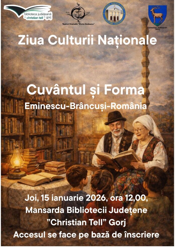 Ziua Culturii Naționale va fi marcată, pe 15 ianuarie, printr-un eveniment dedicat celor mai tineri cititori, organizat de Biblioteca Județeană „Christian Tell” Gorj.