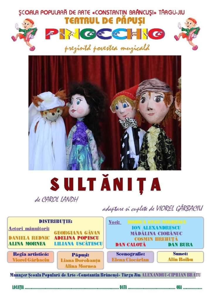 Copiii de toate vârstele sunt invitați duminică, 6 iunie, la spectacolul ”Sultănița”, ce se va desfășura la Teatrul de Vară „Nelu Dumitru” Târgu Jiu.