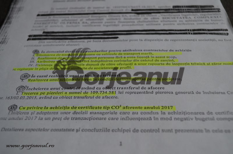 Urmare a celor precizate în raport, o mică parte făcute publice acum de căte Gorjeanul, solicităm public Complexului Energetic Oltenia un punct de vedere oficial, pe site-ul companiei, în legătură cu măsurile luate cu cei vinovați. Anunțăm, de asemenea, cititorii publicației că restul raportului respectiv, dacă CEO nu va da dovadă de transparență și nu îl va publica pe site, va fi făcut public în aceași manieră în următoarele numere ale Gorjeanul.