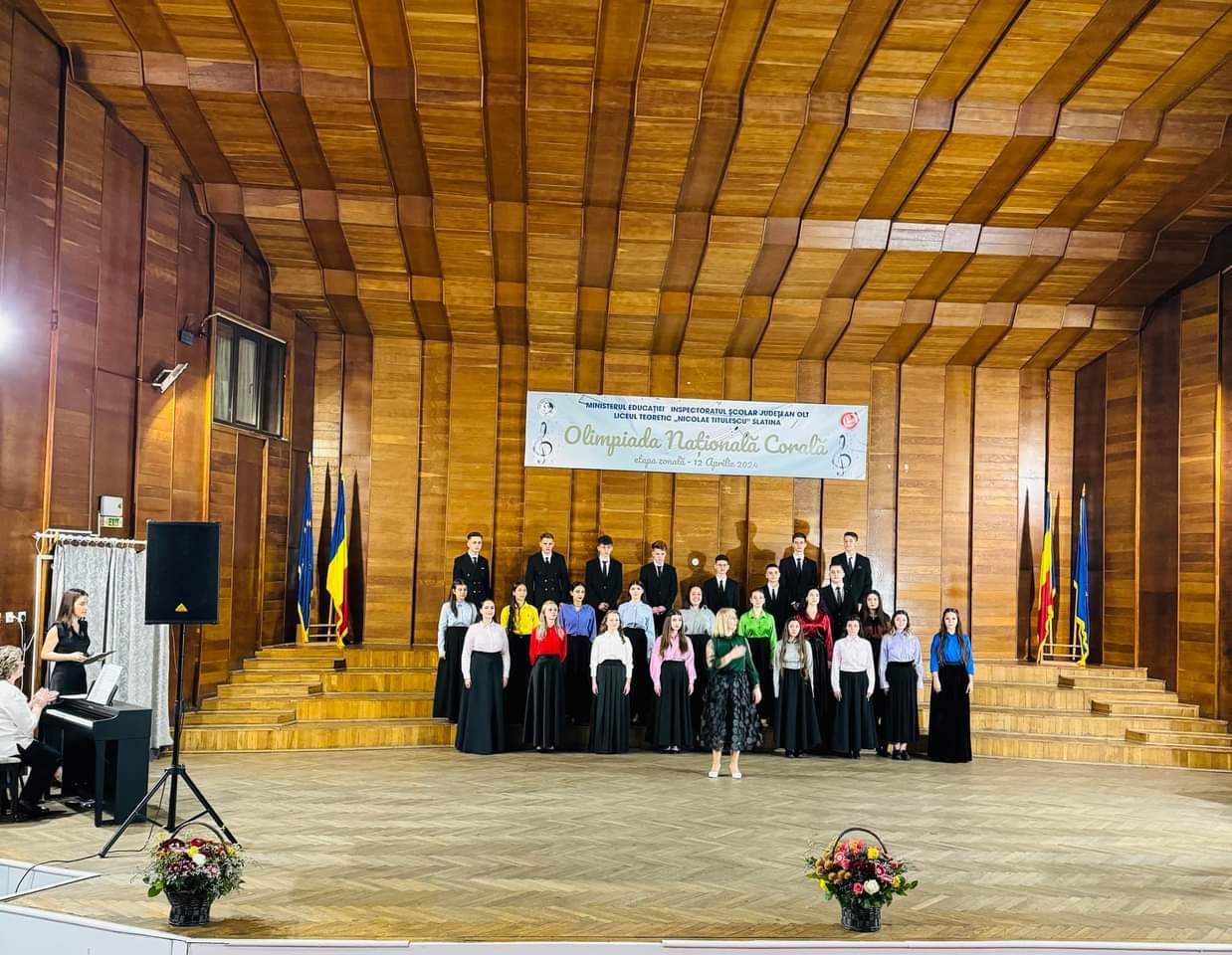 La Olimpiada Corală desfăşurată vineri, 12 aprilie, la Slatina au concurat 11 coruri de la licee vocaţionale şi teoretice din judeţele Olt, Gorj, Argeş, Vâlcea, Mehedinți şi Prahova, evenimentul fiind organizat de Liceul Teoretic „Nicolae Titulescu”, sub egida Inspectoratului Şcolar Judeţean Olt şi Ministerului Educaţiei.