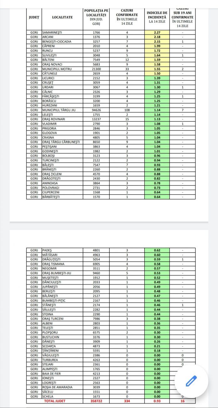 COVID-19: Gorjul a scăzut la 0,93 rată de infectare