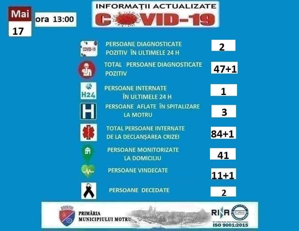 Cazurile de persoane din Ploștina și Însurăței, infectate cu coronavirus, au condus la creșterea numărului de persoane izolate la domiciliu, la 41 pentru astăzi. Alți trei pacienți internați, așteaptă rezultatele probelor de laborator”, a anunţat, aseară, Gigel Jianu, primarul municipiului Motru.