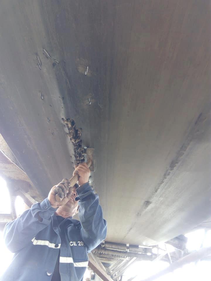 Înarmați cu câte un ciocan, unii dintre angajații unităților miniere ale CEO fac și această activitate pentru menținerea în funcțiune a unor bucăți de cauciuc care au de mult timp depășit termenul de funcționare.