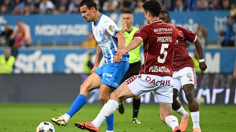 Universitatea Craiova a revenit pe primul loc în Superliga de fotbal după victoria de duminică seară, 1-0 (0-0), împotriva Rapidului. Meciul de pe ,,Ion Oblemenco” a contat pentru etapa a cincea din play-off, ultima din tur. Palestinianul Assad Al Hamlawi a dat singurul gol al meciului în minutul 47, după o fază fixă. Apăsați de miza confruntării, jucătorii celor două formații au fost extrem de prudenți. Craiova a insistat mai mult, dar singurul șut pe poartă din prima repriză i-a aparținut lui Baiaram. De altfel, în ciuda unor oportunități mari ale lui Christensen și Dobre, din partea secundă, giuleștenii au terminat fără a cadra vreun balon în spațiul apărat de Laurențiu Popescu. După succesul lui Dinamo în fața Universității Cluj, Craiova i-a egalat la puncte pe ardeleni în fruntea clasamentului, și se concentrează acum pe semifinala din Cupa României, împotriva ,,câinilor roșii”.