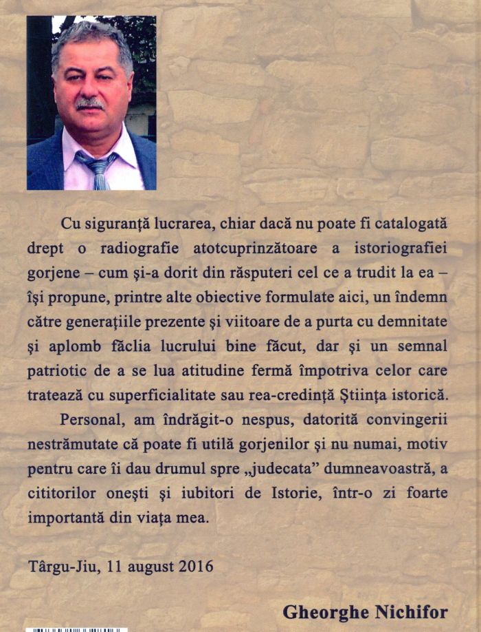 * Gheorghe Nichifor: Contribuţii la o posibilă bibliografie istorică a Gorjului; editura PIM, Iaşi, 2016, 728 pagini