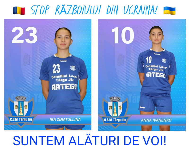 Clubul Sportiv Municipal Târgu Jiu, entitate care are în componenţă şi două sportive din Ucraina, Ira Zinatullina și Anna Ivanenko, ambele legitimate la secţia de handbal, şi-a exprimat disponibilitatea de a ajuta refugiații care vin în România din cauza războiului. Directorul Robert Bălăeţ a anunţat că entitatea pe care o conduce are un acord cu sponsorii săi pentru a primi ucrainienii care fug din cauza atacului rusesc. „Ceea ce se întâmplă ne-a făcut să ne gândim foarte mult la sportivele noastre, la familiile lor, care au rămas blocate la Kiev, dar și la toți cei care, fără vină, sunt acum parte din acest tragic episod. Ne dorim ca totul să se termine cât mai repede pentru a se limita suferințele acestora. Ne-am gândit și cum am putea ajuta și noi într-un fel, și, prin ajutorul sponsorilor noștri, vom primi refugiați! Așa cum spuneam ne dorim ca totul să se termine cât mai repede, să ne putem gândi din nou doar la sport! Ira, Anna, suntem alături de voi!”, a precizat directorul de la CSM. Şi primarul municipiului Târgu-Jiu, Marcel Romanescu, a avut un mesaj de susţinere pentru cele două sportive. ,,Războiul desparte oameni și distruge vieți. Suntem alături de sportivele CSM Târgu Jiu, Ira Zinatullina și Anna Ivanenko, ambele din Ucraina, care acum sunt afectate de ceea ce se întâmplă acasă. Suntem o familie aici, la Târgu-Jiu, și simțim durerea celor de lângă noi. Este nedrept și totul pare un coșmar, o situație oribilă, imposibilă în lumea civilizată a secolului XXI. Vom avea grijă de sportivele noastre și facem toate eforturile ca aici sa se simtă acasă”, a scris edilul pe pagina sa de facebook.