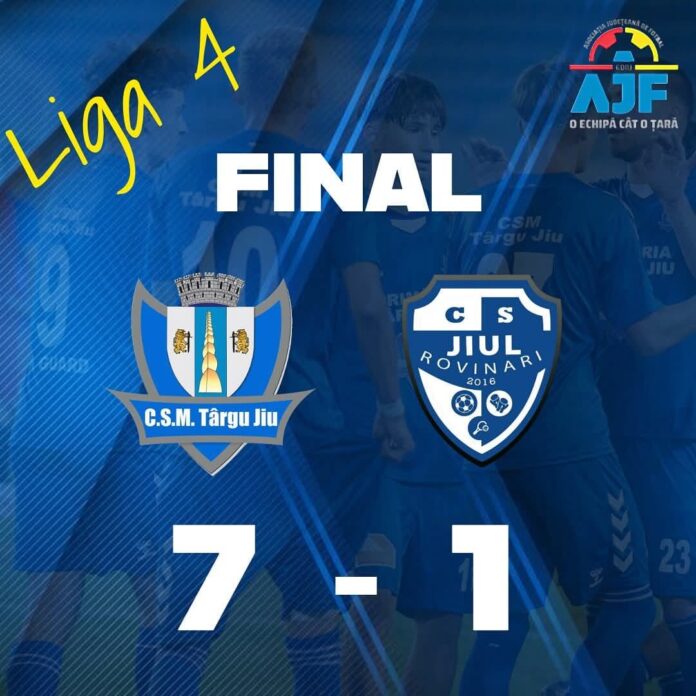 CSM Târgu Jiu a înregistrat, sâmbătă, a 16-a victorie consecutivă în Liga a 4-a, după ce a trecut de Jiul Rovinari, scor 7-1.