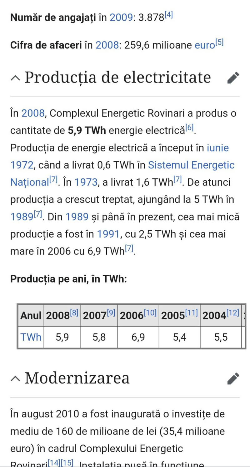 Tot Complexul Energetic Oltenia produce în prezent mai puțină energie decât producea în anii trecuți Termocentrala Rovinari. Concluzia a apărut pe grupurile minerilor și energeticienilor: ,,Cum de s-a ajuns ca întreg CEO-ul să producă mai puțină energie electrică decât producea doar termocentrala Rovinari? Ăsta este rezultatul salvării acestei companii de către toată clasa politică mioritică! Recordul istoric al acestei termocentrale este în 2006 când a produs 6,9 TWh adică 6.900.000 MWh”, arată angajații CE Oltenia pe pagina de Facebook ”Salariați din Complexul Energetic Oltenia”.