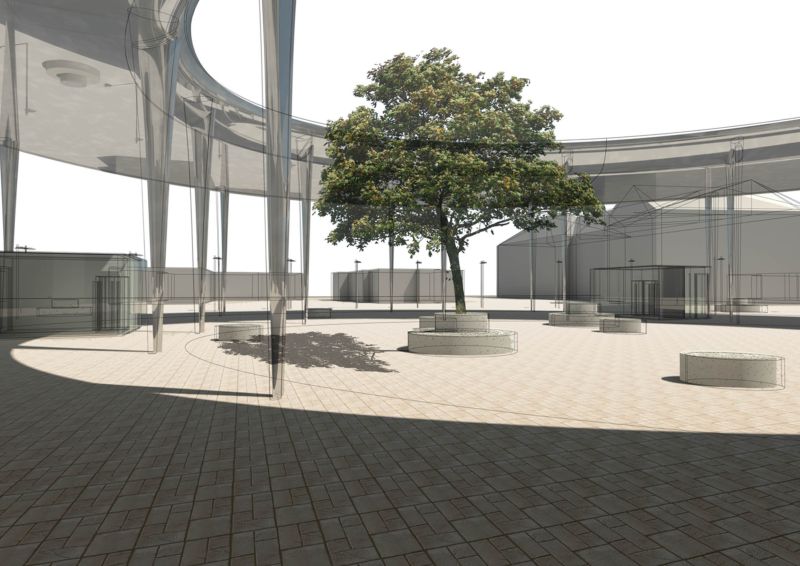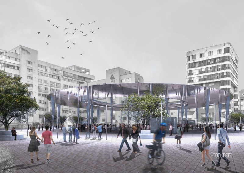 Acest pavilion are rolul (…) de a crea aceeași interfață între vecinătate și amenajare. Ne gândeam ca el să fie format dintr-un disc cu suprafață de oglindă dedesubt. Este o rezolvare foarte la modă acum. Această piață ar fi de fapt un punct de întâlnire acoperit, (…) ca un mare hol urban unde lumea se întâlnește. (…) Va fi un punct de informare legat strict de Brâncuși, un infopoint. (…) Această traversare auto pe sub piață va fi completată și cu parcaje pentru că în momentul în care vom asigura și aici parcaje am putea să venim și să eliminăm mașinile de pe stradă”, a explicat arhitectul.